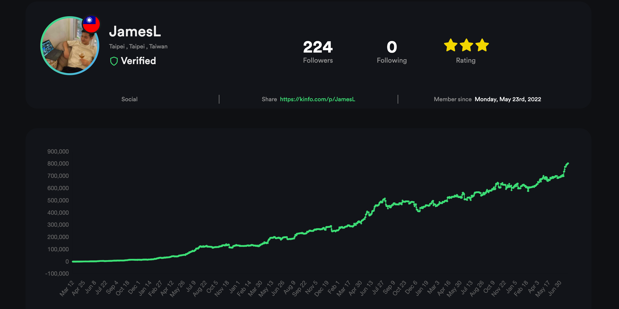 沒有幾個交易者願意公開自己的交易績效,這是我在第三方認證平台 KINFO 上的交易獲利曲線圖(截至 2025 年 9 月份)。